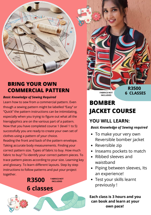Now that you have completed course 1 (level 1 to 5) successfully you are ready to create your own set of clothes using a pattern of your choice.